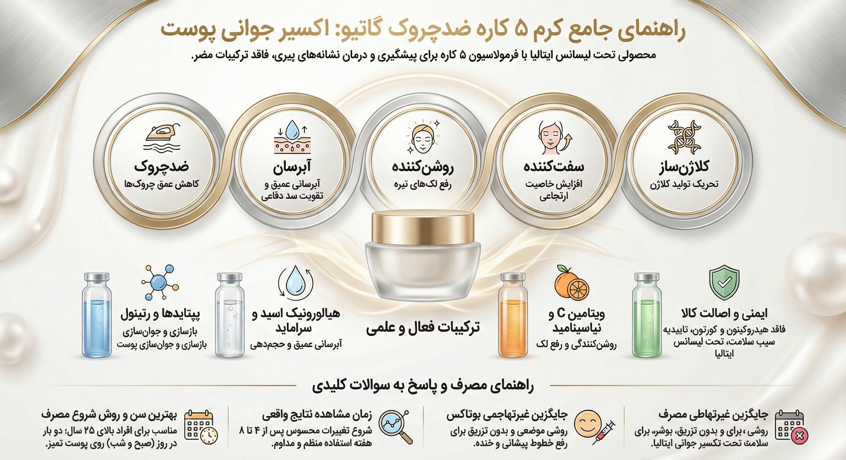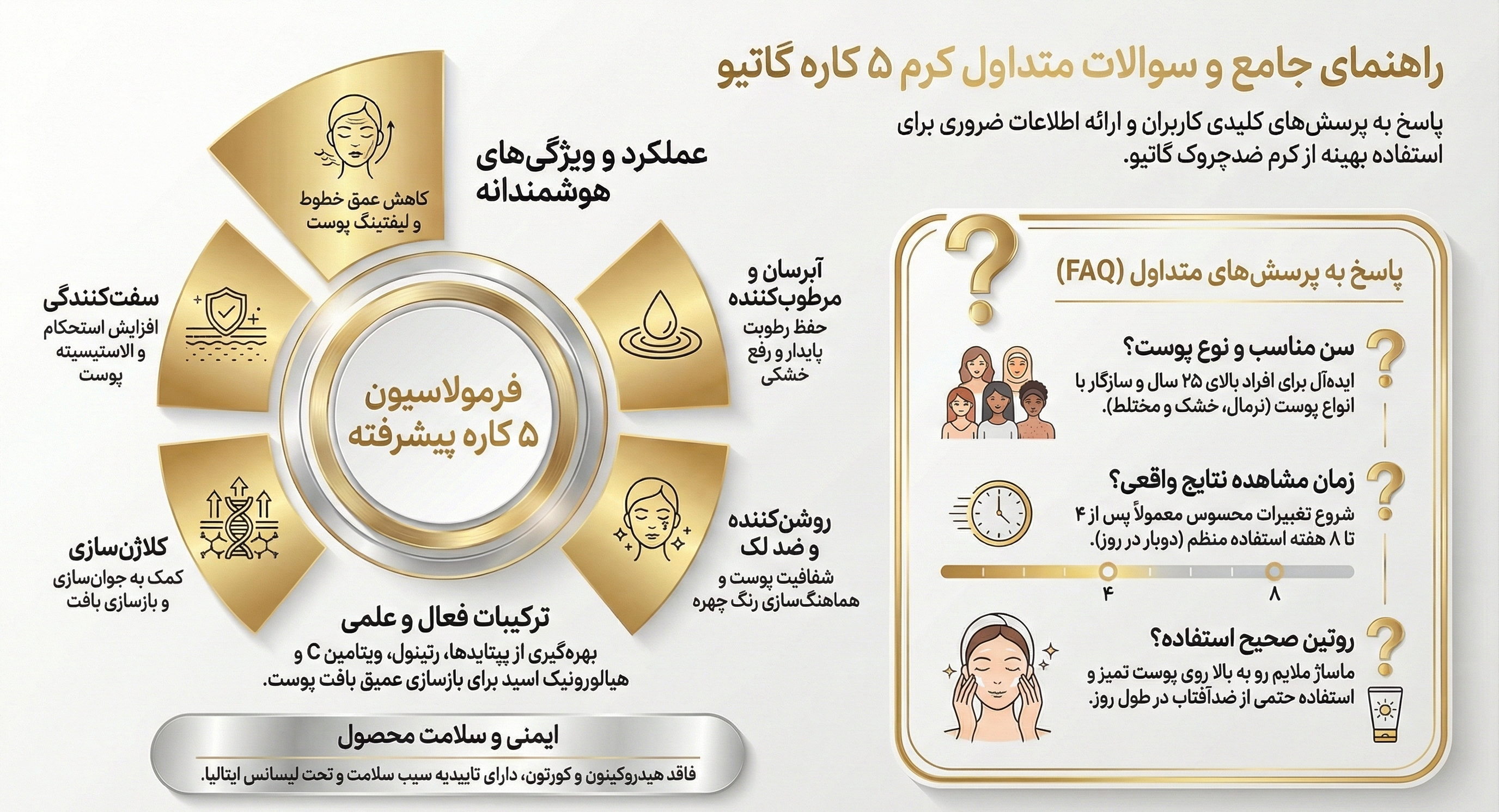 | نام کامل محصول | کرم ضد چروک 5 کاره گاتیو (Gatieau Anti-Wrinkle 5-in-1 Cream) |