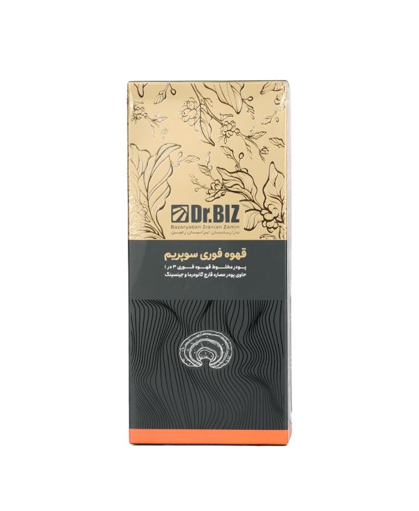 این قهوه در بستههای ۲۰ ساشهای عرضه میشود و حاوی ترکیباتی نظیر جینسینگ، قارچ گانودرما و قهوه است. قهوه فوری سوپریم گانودرما دکتر بیز یک ترکیب خوشمزه با خواص بینظیر است که سرشار از آنتیاکسیدانها، املاح و ویتامینهای ضروری برای بدن است. جینسینگ موجود در این قهوه، به افزایش سطح انرژی، کاهش خستگی و بهبود عملکرد مغز کمک میکند. قارچ گانودرما، به عنوان پادشاه گیاهان دارویی، دارای خواص چربیسوزی قدرتمندی است و به افزایش متابولیسم بدن کمک میکند. این قهوه گانودرما دکتر بیز علاوه بر کمک به لاغری، سیستم ایمنی بدن را تقویت کرده، قدرت باروری را افزایش میدهد، استرس را کاهش میدهد و به سلامت پوست و جوانسازی آن نیز کمک میکند. بسیاری از ورزشکاران نیز برای عضلهسازی و افزایش انرژی از این محصول استفاده میکنند.